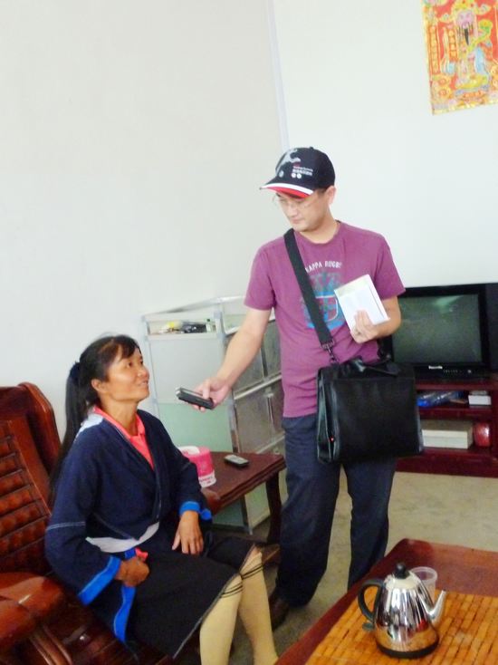 采访团在连南县高寒山区自愿移民新村采访住上新房的瑶民唐佛璇二妹