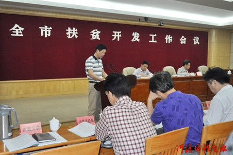2014年4月23日,河源市召开扶贫工作会议,中山市东凤镇驻村干部在会上作先进经验介绍。