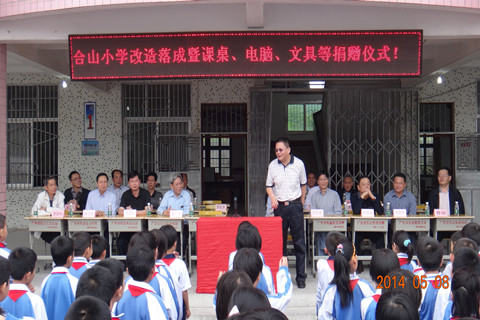 东方村的合山小学有学生近300名,由于合山小学多年来无法获得足够的经费支持,运动场所设施不全,操场泥泞不堪,长满杂草;其次,学生课桌椅也很破旧,课桌椅自建校购置以来已经使用15年,无法提供良好的学习和教学条件。广东省航运集团经过充分摸底调研,与镇、村、学校沟通协商,对合山小学进行了较大改造,硬化操场,铺设跑道,安装体育器材,绿化和翻新校园等,同时购置360套崭新的可升降课桌进行更换。并在了解了学生和学校需求的基础上,给学生们带来了330套全新文具和笔记本,并向学校捐赠电脑6台,跳绳和球拍等体育用品一批。省航运集团的领导干部纷纷亲手将文具和笔记本等送到孩子手中,拿到新文具后面带笑容的学生们和拿到办公用品的老师们向省航运集团全体来访人员热烈地鼓掌表示感谢。