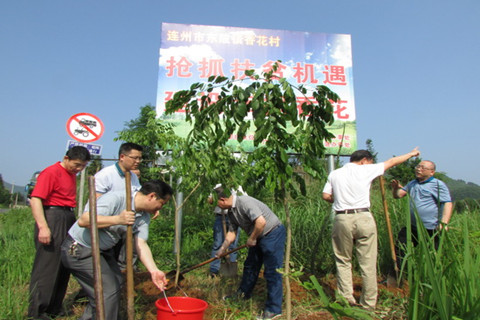 为努力践行党的群众路线教育活动,切实加大帮扶力度,从而形成全民参与的“大扶贫”格局,近日广州市荔湾区彩虹街团工委,牵头组织了本街区和广州市冶金设计院等单位的青年60多人,来到连州市东陂镇香花村开展扶贫系列活动,向香花小学和村卫生站分别捐赠价值2.5万元的文具、药品等。接着,荔湾区委办领导与彩虹街青年在村头开展了植树活动,为香花村增添了一道亮丽的风景。