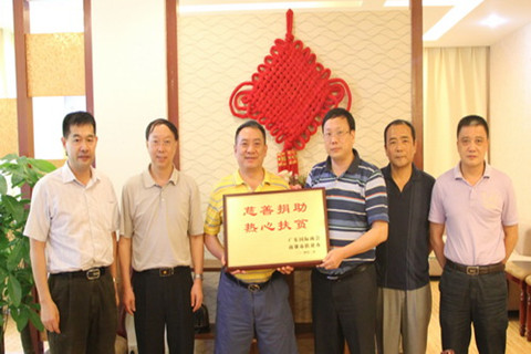 邱招贤副会长向热心广东省贸促会扶贫工作的企业家颁发牌匾