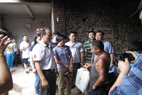 入户慰问(前排左一为郭建伟总经理、前排左二为黄芳总经理)