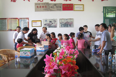 7月21日,省旅游控股集团下属单位白云城市酒店、南湖湖畔酒店两单位,由黄芳总经理、郭建威总经理带队,组织带领26人党员、干部到集团帮扶村深入开展第二轮群众路线教育学习实践活动,针对村里贫困户以及贫困户在村小学学生进行了资金、衣物、书包、学习文具等项目的帮扶慰问,在慰问过程中受到贫困帮扶户以及学生们的热情欢迎;在到村入户中为4户特困户送来了现金慰问与衣物资助,为贫困户在校学生45人送来了书包和文具。在村帮扶项目建设上考察参观了村道铺建、广场建设、水圳清理、路线标识等项目的建设情况,通过帮扶前的情况介绍以及建设前的帮扶对比,两位总经理一行深深感受到村里的巨大变化。