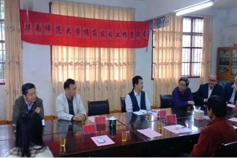调研过程中,校领导一行还参加了顶岗实习调研工作座谈会,看望华南师范大学在寨岗镇顶岗实习的八位同学。在听取了地方小学负责人和参加顶岗实习的同学汇报后,沈文淮副校长肯定了同学们的工作,对实习后期工作进行了指导,并希望同学们能学以致用,锻炼自己。胡社军书记希望学校今后有更多的同学参与顶岗实习,服务社会。