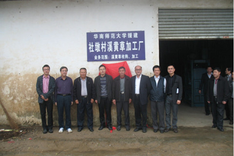 座谈会结束后,与会人员参观了学校援建的社墩村溪黄草加工厂,并为加工厂揭牌。