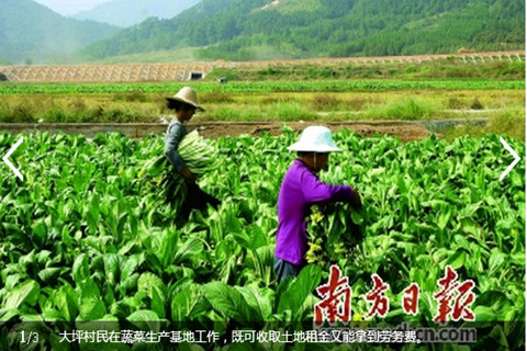 有了便利的交通,明确了发展方向,大坪村逐渐找到了适合自身的发展模式。去年,大坪村引进外地老板投资,采用公司+农户+合作社的模式,筹建500亩规模的蔬菜生产基地,主要种植菜心、辣椒、青瓜等几十个品种,年产值估计超300万元。