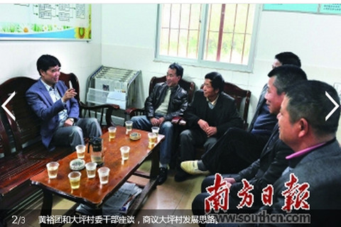 这一切的变化,始于连州市委书记黄裕团到该村挂点帮扶。他在繁忙的工作之余,坚持抽空每个月入挂点村两次,或送资金送技术送政策,或访民情听民声解民困,在他的帮助和全村的努力下,大坪村在2014年集体经济收入突破4万元,村人均年纯收入8200元,贫困户人均年纯收入提高至4500元。