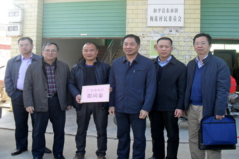 2015年1月8日,中国农业银行广东省分行副行长黄腾江在农村产业部总经理郑成永、农户金融部总经理徐明、河源分行行长何宏业、行长助理李永锋等同志的陪同下,来到结对帮扶村梅花村送温暖活动,给贫困户送上生产发展基金和慰问品,并就当前和今后工作提出指导性意见。