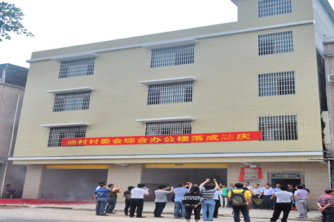 广州船舶工业公司扶持连平大湖镇油村建设的一体化商务村委办公楼落成
