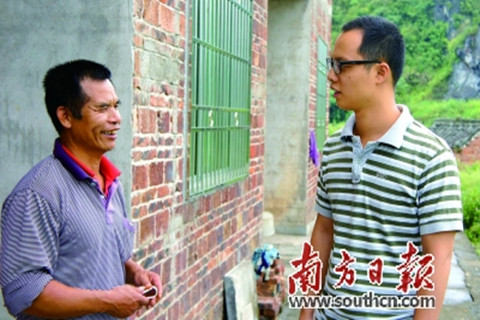 广州市财政局驻共和村扶贫干部黄钊正在进行进村入户走访。