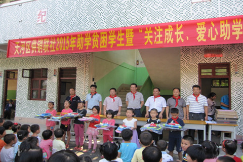 当日下午3点,中秋节慰问活动在村委综合楼党员活动中心举行。朱主任代表天河区供销联社表达了对贫困户的关怀,并向他们送上慰问金和节日祝贺,祝福他们的生活越来越好。会后,一行人又赴下宝龙村红光小学开展“关注成长、爱心助学”捐赠仪式。这次活动,向贫困户适龄子女发放了助学金,并捐赠1.4万元,为全校96名学生添置校服、书包及文具,同时为学校老师添置工作服、送上中秋慰问品。仪式最后,红光小学校长何启波向区供销联社致答谢词并赠送了“情系教育,倾情捐助”的锦旗,感谢区供销联社为贫困村所作出的慷慨捐助。