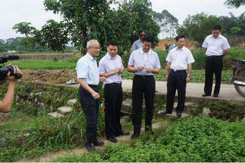 党组书记、厅长王芃(左一),党组副书记、巡视员陈英松(左三)深入仙草地种植园调研。