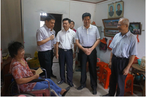 党组书记、厅长王芃(右一),党组副书记、巡视员陈英松(右二)亲切慰问贫困群众。