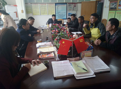 省政府特聘参事、省扶贫开发协会常务副理事长兼秘书长钟韶彬与广东出入境检验检疫局驻中洞村第一书记詹俊东、驻村干部黄春宇等相关同志座谈。