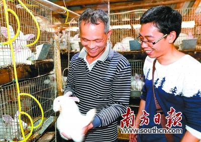 李其新养殖兔子是广东电网公司根据贫困户的实际和养殖业的规律,成本低、见效快的一种模式。该公司共为养牛、养兔、养鸡的3户带头人提供22万元的免息贷款,鼓励他们做出示范,为贫困户提供种苗和技术指导,带动他们参与进来。“出栏的兔子全部由全省电网系统的职工食堂收购。”胡红接着说,现有9户贫困户养兔子,每户最大规模可同时养3批108只,滚动发展,按批次每月可出栏一批,年纯收入达12000元。