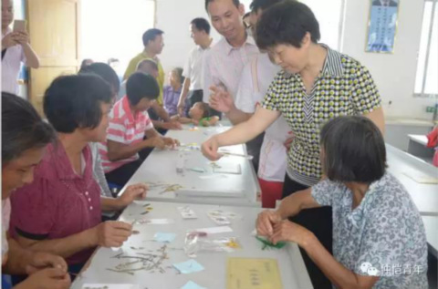当地村民主要以耕田为生,缺乏手工技能,一到农闲时节就会闲下来。秉着“授人与鱼不如授人与渔”的理念,仲恺“三下乡”实践队义教组将当地妇女扩充到压花技巧课程授予对象之中,让当地妇女齐齐动起手,和小老师们一起学习书签压花制作。赋予村民一技之长,让她们在农闲时节也能增收创收。