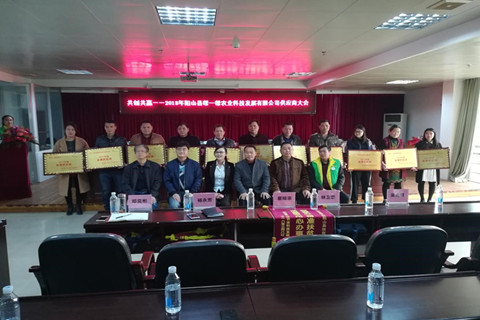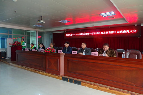 《广东扶贫》全媒体中心讯 等闲识得东风面,万紫千红又一春。3月8日,黄埔—阳山“消费扶贫直通车”平台运营商——阳山县帮一帮农业科技发展有限公司召开“共创共赢”为主题的2018年供应商大会,黄埔区驻阳山县精准扶贫工作组组长瞿桂宗、副组长林卫忠,阳山县府办副主任邓奕彬、科农局副局长杨永芳,阳山县帮一帮农业科技发展有限公司董事总经理吴兆君、副总经理廖启雄以及部分扶贫驻村工作队长、阳山县40多家供应商出席了会议。