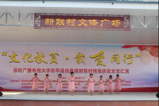 《广东扶贫》全媒体中心讯(通讯员/罗艺斌报道)扶贫先扶志,扶贫必扶智。5月24日下午,和平县优胜镇新联村文体广场歌舞飞扬、气氛热烈,由深圳广播电视大学主办的以“文化扶贫,载爱同行”为主题的精准扶贫文艺汇演在这里精彩上演。