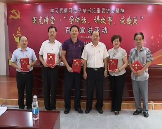 《广东扶贫》全媒体中心讯(通讯员/张正学报道)7月4日,围龙讲堂·“学讲话、讲故事、谈感受”百姓宣讲活动在梅南镇水美村举行,张正学、王笑茹、黄雄安三位梅县区百姓宣讲团成员进行了首场宣讲。活动现场为首批梅县区百姓宣讲团成员,“新时代红色文化讲习所”宣讲员颁发聘书。随后,参加活动人员参观了梅南镇水美村新时代红色文化讲习所、新时代文明传习所和东江工农红军总部,瞻仰了革命烈士纪念碑,铭记光辉历史,传承红色基因。梅县区委宣传部副部长张理昌参加活动。