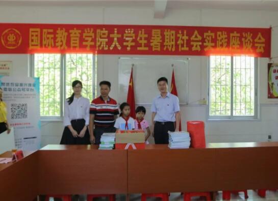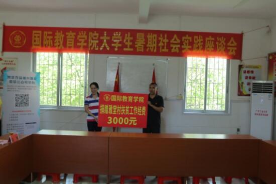 座谈会上,学校团委向雅堂小学捐赠2000元学习用品,国际教育学院向雅堂村委捐赠3000元扶贫工作经费,国际教育学院团委移送“帮优农品振兴雅堂”微信公众平台。