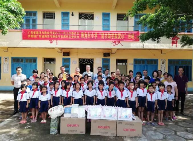 为深入学习贯彻党的十九大精神,在广大小学生中广泛开展社会主义核心价值观学习教育,合力推进厅扶贫攻坚任务落实。7月25日,广东省海洋渔业厅关工委、直属机关团委赴厅扶贫点海角村小学开展“捐书助学献爱心”活动,并在学校操场举行了简朴隆重的赠书仪式。30名学生代表统一穿由厅关工委赠送的校服、佩戴红领巾,兴高采烈接受厅关工委、团委赠送社会主义核心价值观、小学生课外读本等各类书籍200多本(套)、文具礼盒100套。