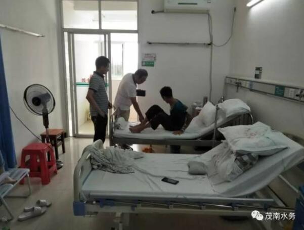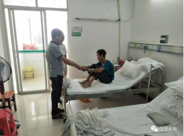 7月19日下午,茂南区水务局驻镇盛镇腾山村委会精准扶贫工作领导小组和帮扶干部、腾山村委干部一行,来到茂南区人民医院,探望慰问因病住院的贫困户黄亚明,为他送上美好的祝愿和慰问金1000元。