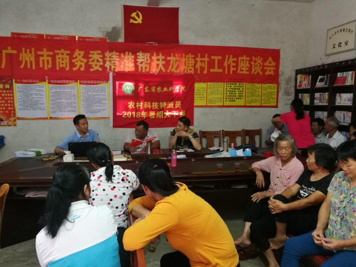 广州市商务委自对口帮扶龙塘村以来,高度重视产业帮扶工作,大力发展光伏发电特色产业,努力推进农业特色产业,输血+造血项目同时推进,建立长效扶贫机制。在省农科院、广州驻梅工作队、工作组及当地党委政府的指导和支持下,紧紧依靠村两委中坚力量,引入外部专家力量提供技术支撑,深入群众挖掘村民自身发展力量,制定工作方案,探索了一条“农业专家+合作社+种植大户+贫困户”的农业产业发展模式,省农科院的专家负责种植技术指导,龙塘村种植专业合作社负责土地流转并统筹631资金为项目开展提供部分资金,种植大户具备多年果树种植、水果贸易批发经验作为经营主体负责经营管理并提供主要资金来源,贫困户通过参与项目务工、协助申请631资金及提供项目用地参与到项目中获得工资收入、固定分红及地租三方面的收益。