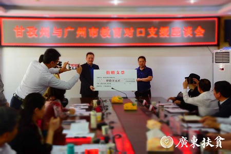 近年来,广东省和广州市始终将教育摆在对口支援优先位置,开展了全方位、多层次、多形式的教育对口支援。一是截至2019年广东省广州市向甘孜州新龙、色达、炉霍等三县安排对口援建资金8274万元,用于建设双语寄宿制学校、智慧教育中心等建设项目16个。二是近两年广州市教育局在计划外为三县安排150万元,用于教育对口支援工作经费。三是2019年广州市为甘孜州先后举办了“教育管理干部培训班”“中小学校长培训班”“山海对话”等专题培训班,培训骨干教师、校长和教育管理人员120人次,挂职进修教师6人,为甘孜州打造一支“带不走的教师队伍”。四是广州市共安排12所中小学与三县中小学进行结对子,通过专题讲座、同课异构、评课议课等活动提升教学水平。同时,2019年安排三县50名学赴广州市结对学校开展了藏汉学生“手拉手”“心连心”交流活动。五是动员社会力量帮扶。2019年,广东企事业单位为三县学校捐赠图书、校服和学习用品等款物共35万元。