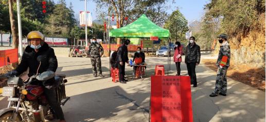 为防外来车辆和人员携带疫情病毒进村,黄洞村由驻村工作队、村干部共15人组成工作队,24小时轮班对入村车辆进行交通监管和车辆人员的体温测量,劝退劝返外来车辆。