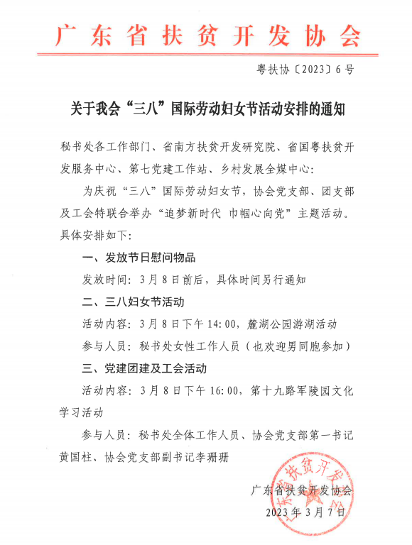 关于我会“三八”国际劳动妇女节活动安排的通知