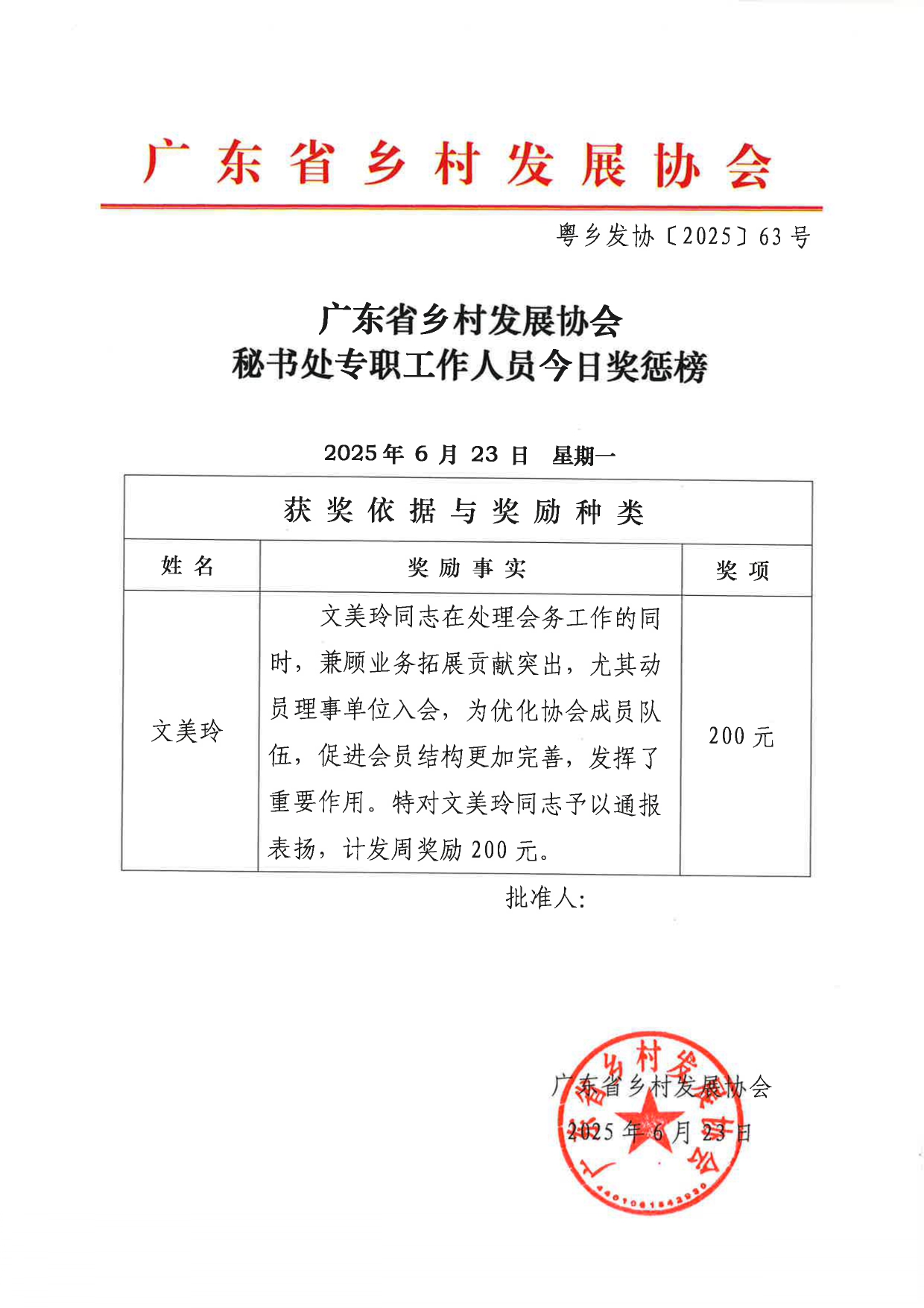 广东省乡村发展协会 秘书处专职工作人员今日奖惩榜