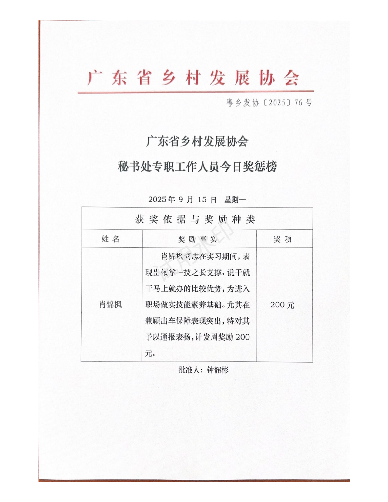 秘书处专职人员今日奖惩榜公示1则