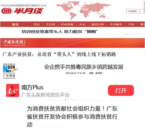 ▲广东省扶贫开发协会采编部分新闻稿件得到主流媒体关注并刊登的截图