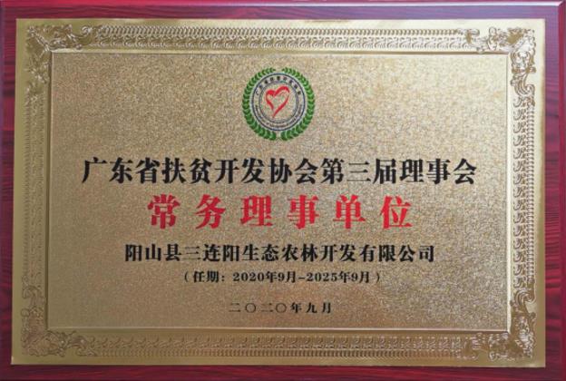 ▲2020年9月25日,三连阳生态农林开发有限公司成为广东省扶贫开发协会第三届理事会常务理事单位