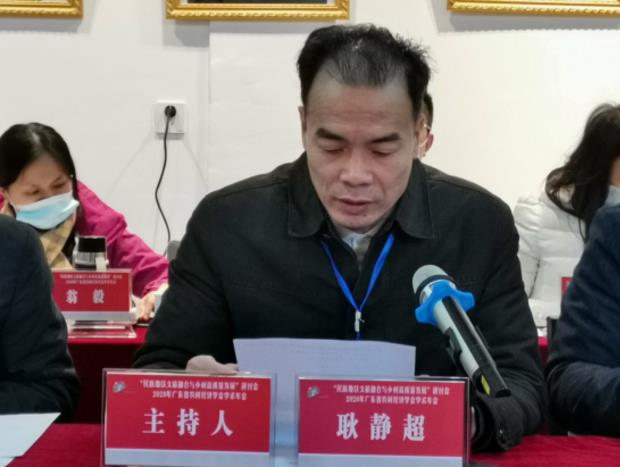 ▲广东省农村经济学会会长、广东科贸职业学院党委书记耿静超主持本次研讨会