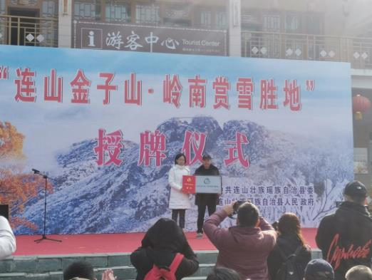 ▲连山县金子山4A级景区为“岭南赏雪胜地”的授牌仪式现场