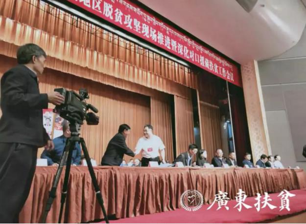 ▲广东省扶贫开发协会钟韶彬副理事长在西藏自治区深度贫困地区脱贫攻坚现场推进会暨深化对口援藏扶贫工作会上