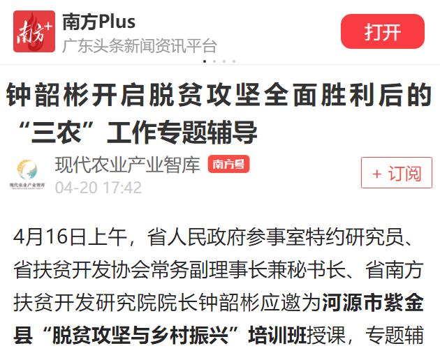 南方+:钟韶彬开启脱贫攻坚全面胜利后的 “三农”工作专题辅导