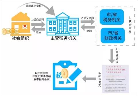 ▲社会组织捐赠税前扣除资格申请流程一览图(图片来源于网络)