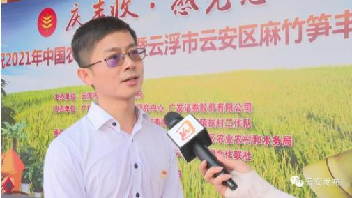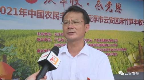 区委农村工作办公室主任、区农业农村和水务局党组书记、区乡村振兴局局长 张力:通过举办丰收节,引导全社会关注农业、关心农村、关爱农民,同时为企业和广大农户搭建产、供、销的平台发展订单农业,通过现场展销、专场推介、现场直播宣传,提高云安农产品的知名度和影响力,打响云安农产品的品牌。