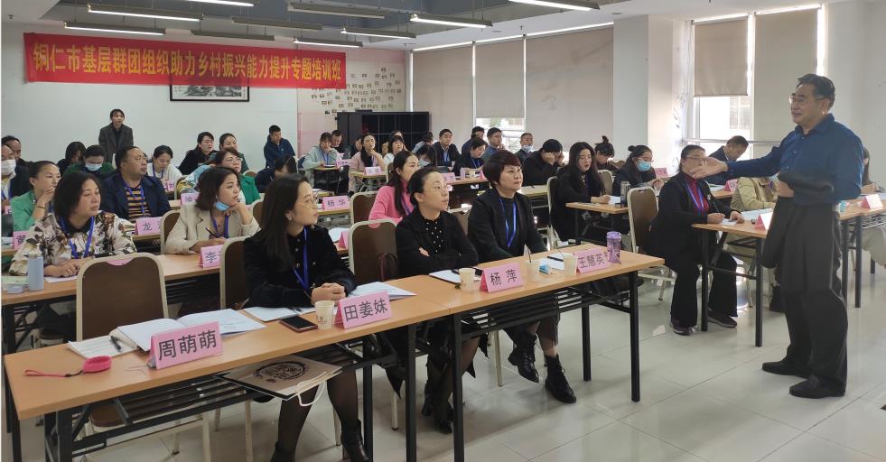 ▲铜仁市基层群团组织干部助力乡村振兴能力提升专题培训班授课现场(摄影/梁艳庆)