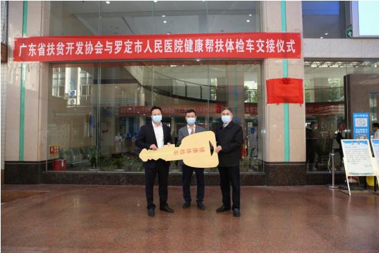 广东扶贫全媒体中心讯(通讯员/唐碧汀) 12月4日,广东省扶贫开发协会健康帮扶工作委员会向罗定市人民医院捐助健康体检车一辆,同时组织广州医科大学附属第二人民医院和罗定人民医院专家开展健康帮扶义诊义检活动。