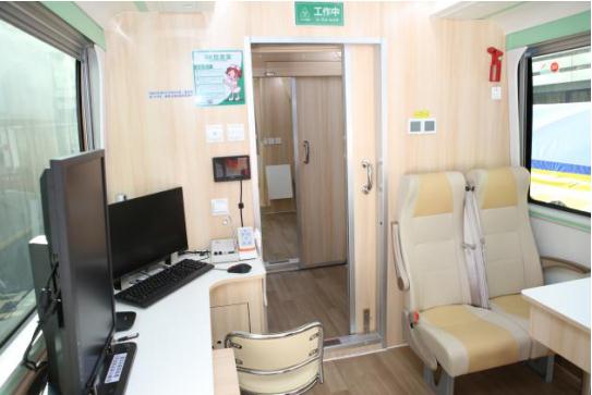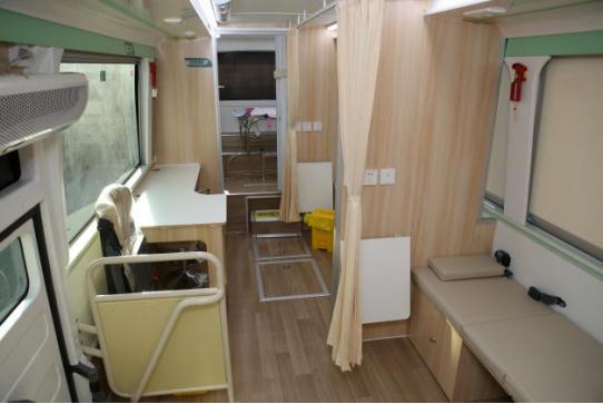 ▲广东省扶贫开发协会捐赠的价值100万元的健康帮扶体检车及其内部设施