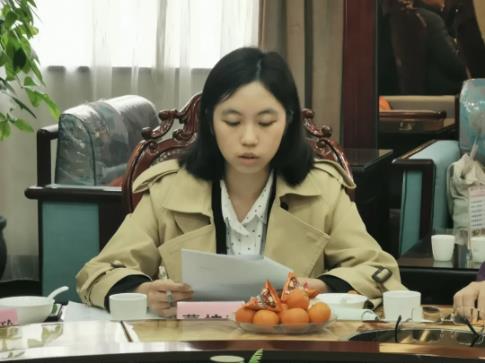▲省扶贫开发协会党支部拟任书记兼第七党建工作站站长助理董梓珊对2021年党建工作站的工作进行总结