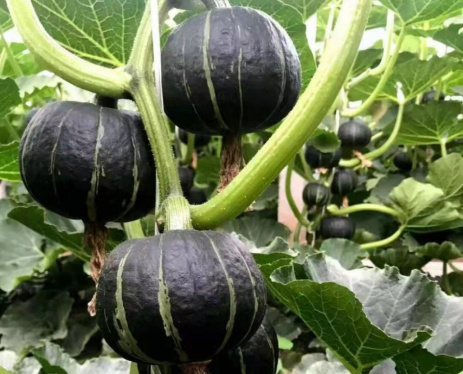台农贝贝南瓜是从日本引进甘栗型南瓜品种。扁圆形,单果约重250克。果皮黑绿色,带浅绿色或灰色的凹条纹。果肉浓黄色,肉质强粉质,口感细腻绵糯。所含糖以木糖为主,含糖量比普通南瓜高,富含胡萝卜素、维他命、矿物质、植物蛋白,是美味健康、营养丰富的“粗粮”。