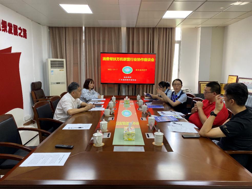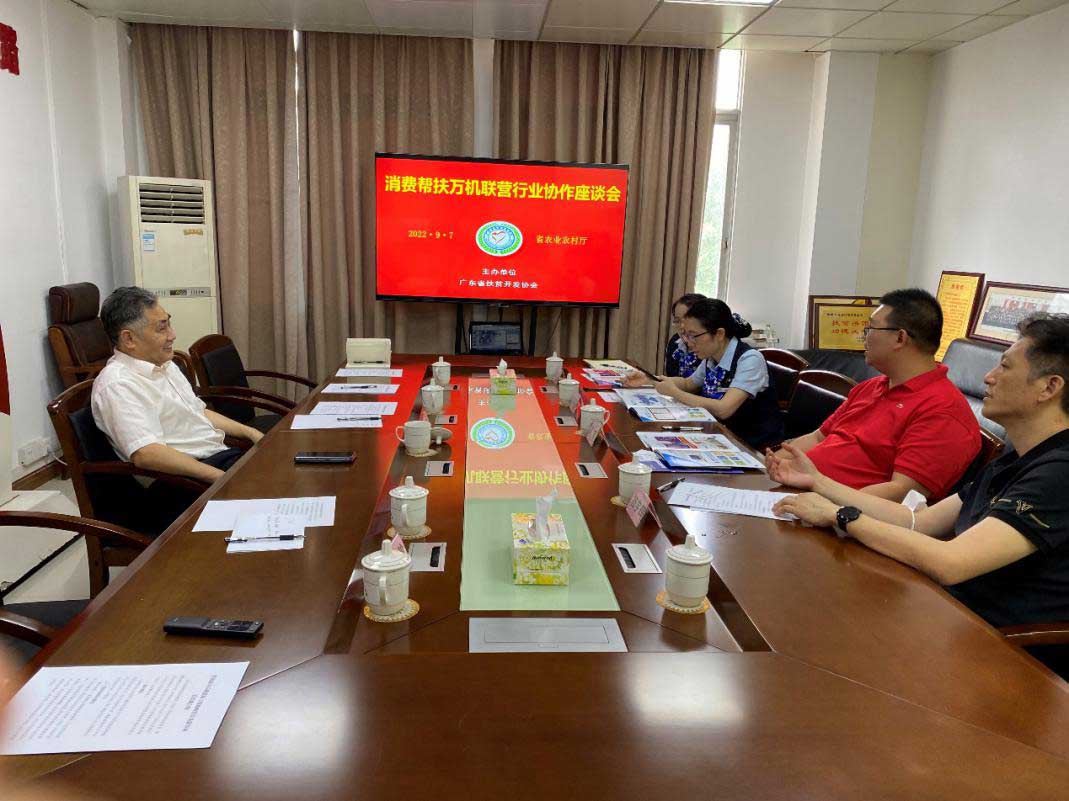 广东帮扶全媒体中心讯(文 姚逸灵) 9月7日上午,广东省扶贫开发协会消费帮扶万机联营行业协作座谈会在省农业农村厅召开,协会消费帮扶工作委员会、富宏优品(广州)供应链有限公司、中国建行银行股份有限公司广州先烈东路支行相关负责人参加会议,共商行业协作事宜。省扶贫开发协会常务副理事长兼秘书长钟韶彬主持会议。