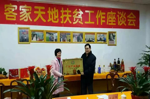 1月29日,企业扶贫工作座谈会在客家天地酒业有限公司举办扶贫工作座谈会暨产业扶贫示范基地授牌仪式。省政府特聘参事、省扶贫开发协会常务副理事长兼秘书长钟韶彬为新认定的产业扶贫示范基地梅州市客家天地酒业有限公司授牌。兴宁市常务副市长何志平率兴宁市扶贫开发局、农业局、发改委、经信局、中小企业局、公安局、永和镇政府等有关负责人共近30人参加座谈会。梅州市工商联同时派人参加活动,客家天地酒业有限公司董事长黄淑辉汇报了企业的发展以及扶贫工作情况。