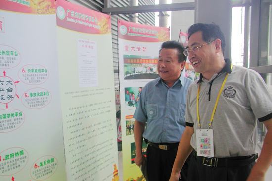 协会常务主席、省人民政府参事、深圳市政协原副主席周长瑚同志(右)莅临指导协会展位