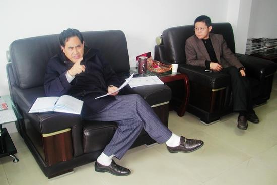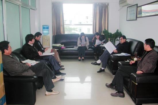 ▲钟韶彬秘书长(右二)组织秘书处工作人员学习中央和省扶贫工作会议主要精神