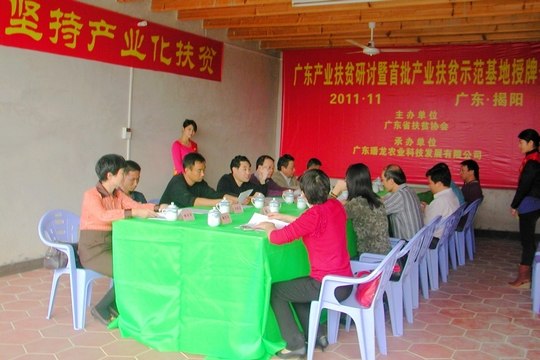 本网讯 11月12日下午,由广东省扶贫开发协会主办、广东璠龙农业科技发展有限公司承办的广东产业扶贫研讨暨首批产业扶贫示范基地授牌仪式在揭阳市揭东县举行。省扶贫开发协会理事长班子成员和产业扶贫专家顾问、会员企业代表、扶贫志愿者、扶贫形象大使等30多人参加研讨。